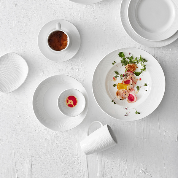 Серия столовой посуды «Spyro» в своем составе имеет такой прочный материал, как фарфор, он долговечен, не подвергается различным степеням деформации (мелкие царапины, сколы, а всё потому, что обжигается в раскаленной печи при очень высоких температурных режимах) и очень элегантно смотрится.