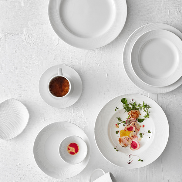 Серия столовой посуды «Spyro» в своем составе имеет такой прочный материал, как фарфор, он долговечен, не подвергается различным степеням деформации (мелкие царапины, сколы, а всё потому, что обжигается в раскаленной печи при очень высоких температурных режимах) и очень элегантно смотрится.