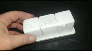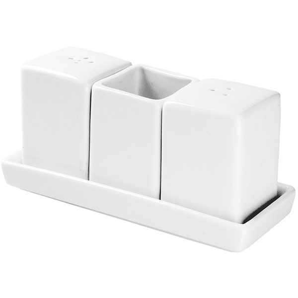 Набор для специй 3 предмета на подставке «Кунстверк»; материал: фарфор; высота=60, длина=130, ширина=55 мм; белый